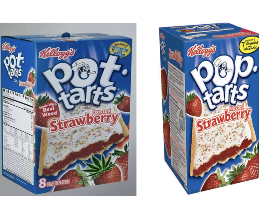 Left: Box of marijuana-infused “pot-tarts” from Pinterest Amanda Young; Right: Box of brand-name “pop tarts” from Darlene Michaud