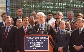 One of the big coincidences of Gingrich’s time in the House was, as Coppins points out in her The Atlantic article “The Man Who Broke Politics,” that after being elected while serving as a college professor in 1978, Gingrich entered the House in 1979, the same year that C-SPAN began to do live coverage of the House floor. Gingrich would give bombastic floor speeches to an empty chamber, well aware that viewers at home were being fed his fire and brimstone directly through their televisions. Four years later in 1983, Gingrich founded the Conservative Opportunity Society to develop goals for House conservatives. This group of right-wing members of the House Republican caucus had grown tired of what they viewed as ineffective party leadership. As current House Minority Whip, Steny Hoyer of Maryland detailed in 2009, “Gingrich’s proposition, and maybe accurately, was that as long as [Republican leaders] and our party cooperate with Democrats and get 20 or 30 percent of what we want and they get to say they solved the problem and had a bipartisan bill, there’s no incentive for the American people to change leadership. You have to confront, delay, and undermine and impose failure in order to move the public. To some degree, he was proven right in 1994.”