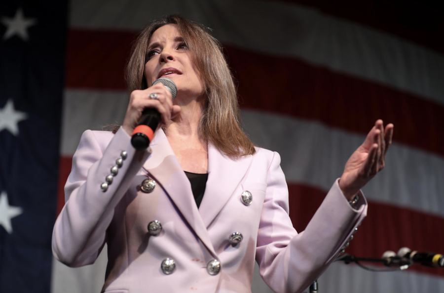 WXRIMG0 “Marianne Williamson” by Gage Skidmore is licensed under CC BY-SA 2.0 .