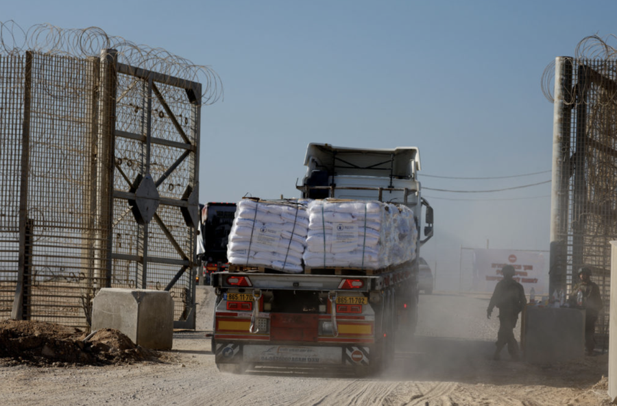 WXRIMG0 “Humanitarian aid is waited to be transferred into Gaza from Israel, at the Gaza part of the Kerem Shalom crossing in the Gaza Strip” by Amir Kohen Edited by Alex Elstrodt, Thomas Baxter, Owen Andrews, and Sarah Ahmad