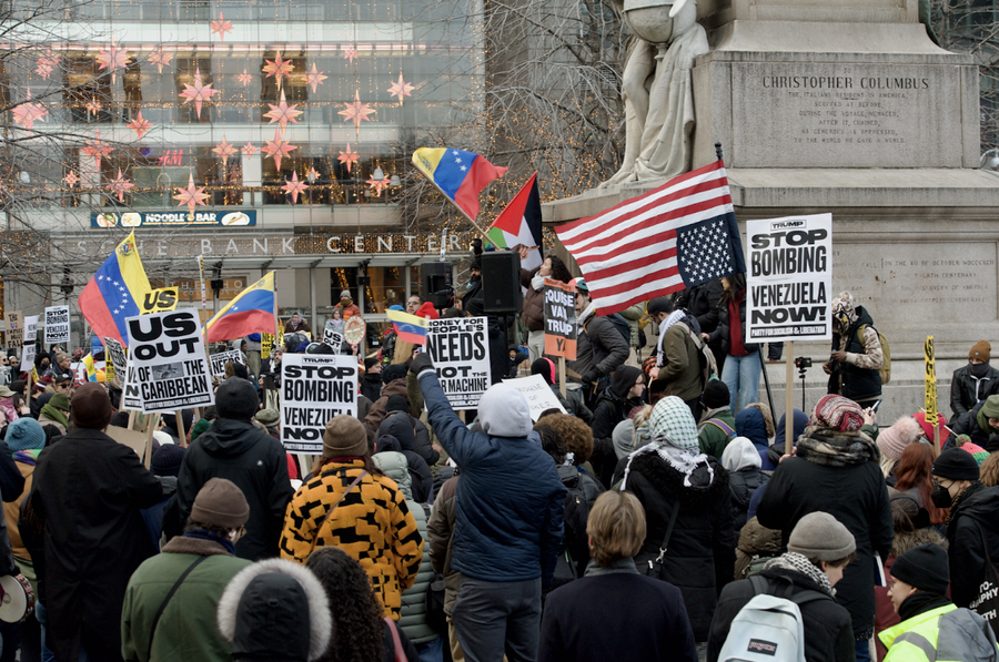 WXRIMG0 https://commons.wikimedia.org/wiki/File:2026-01-03_Venezuelan_protests_in_NYC_184.jpg Edited by Amelia Cantwell and Owen Andrews